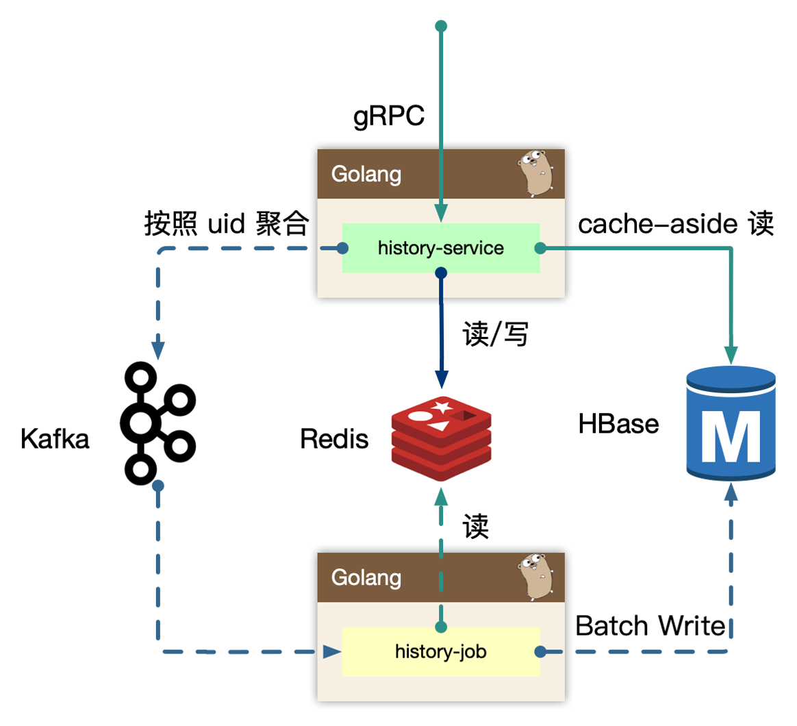 历史记录类型的业务,是一个极高 tps 写入,高 qps 读取的业务服务。分析清楚系统的 hot path,投入优化,而不是哪哪都去优化。