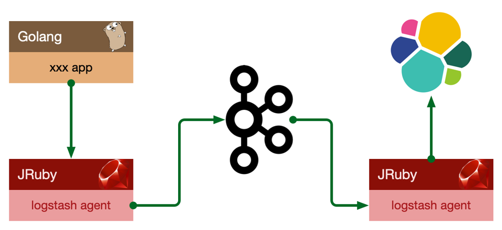 因为 logstash 属于 server 角色,必然出现流量集中式的热点问题,因此不建议使用这种部署方式,同时因为还需要做大量 match 操作(格式化日志),消耗的 CPU 也很多,不利于 scale out。