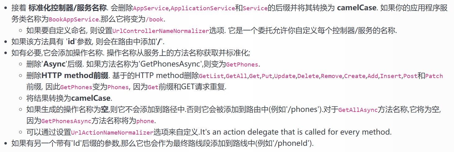 - ABP可以按照惯例自动将应用程序服务配置为API控制器