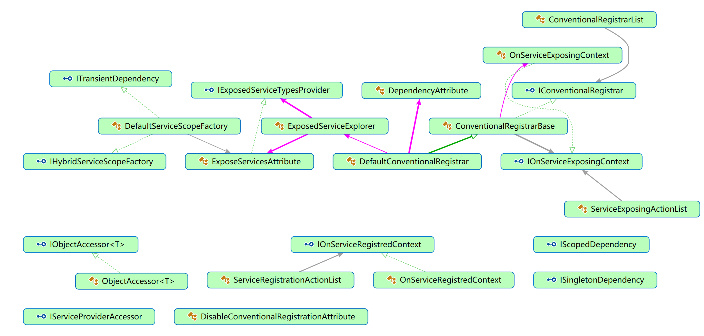 源码在Volo.Abp.DependencyInjection,下面是类关系图