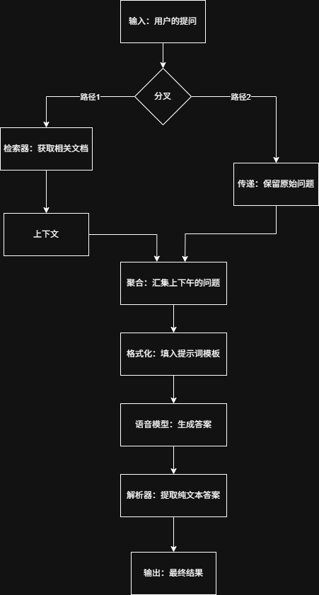 - LCEL(LangChain表达式语言)是一种声明式编程范式,用于将LangChain组件组合在一起,通过管道操作符|实现数据流的高效表达。