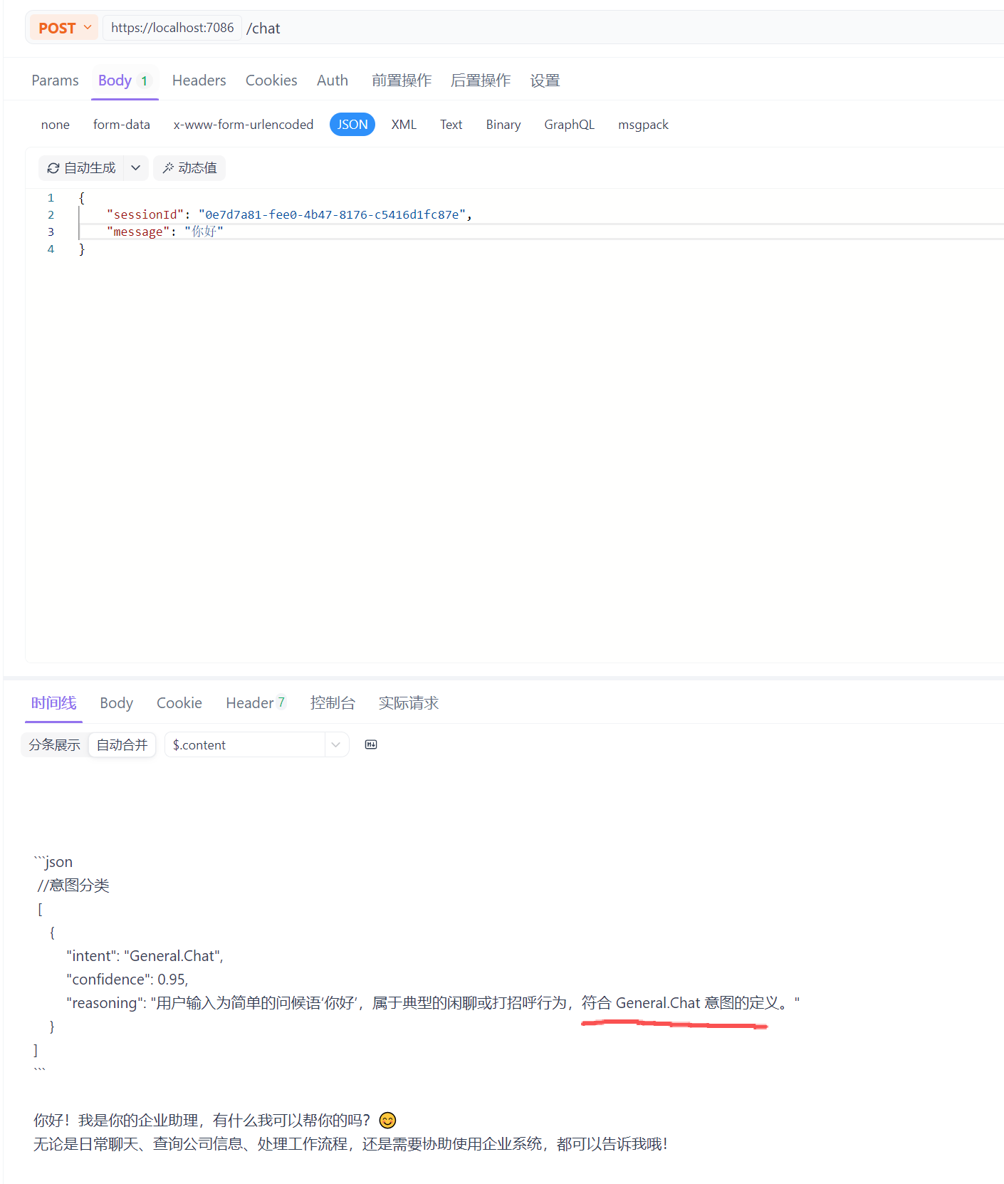 $"\n\n\n```json\n //意图分类\n {evt.Response.Text}\n```\n\n"