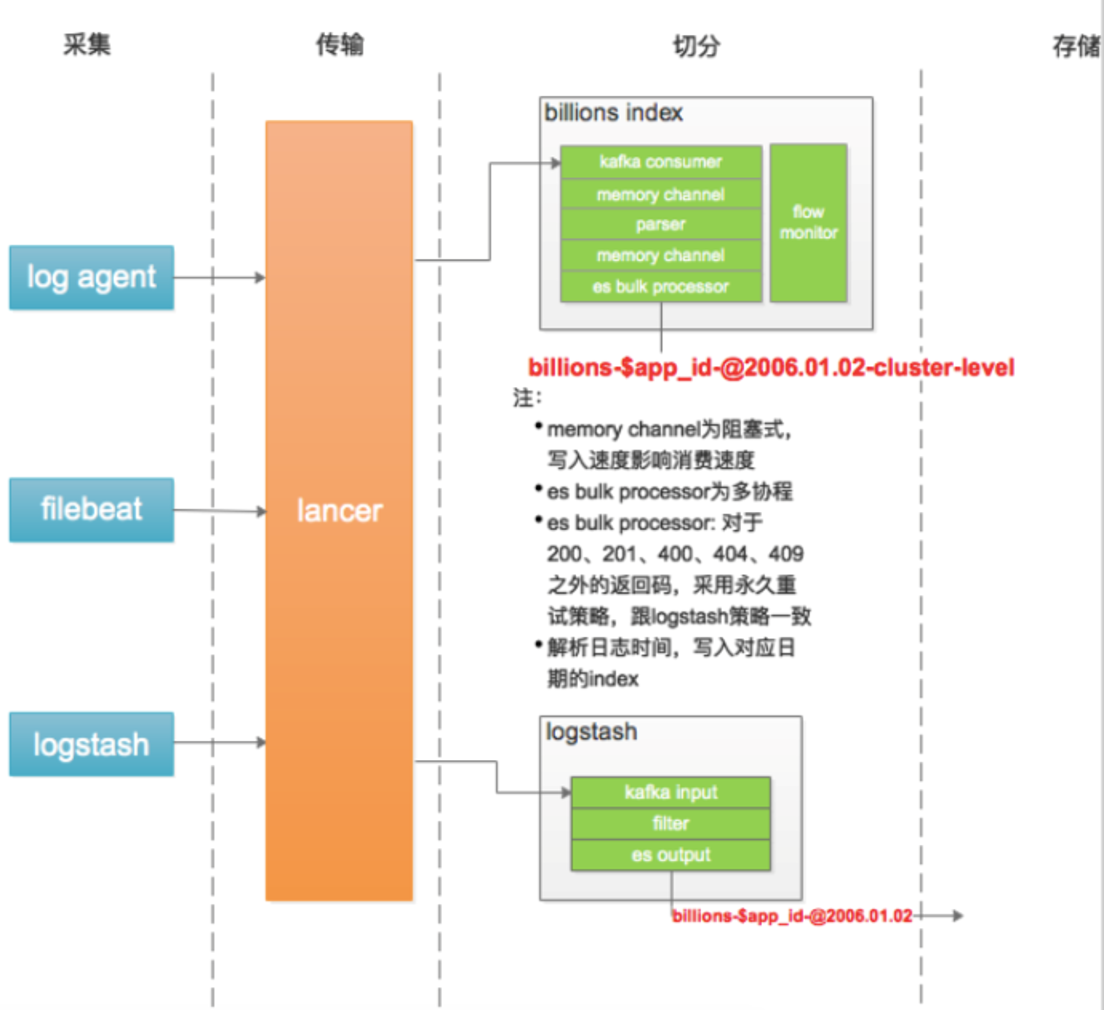 设计与实现,日志从产生到可检索,经历几个阶段: