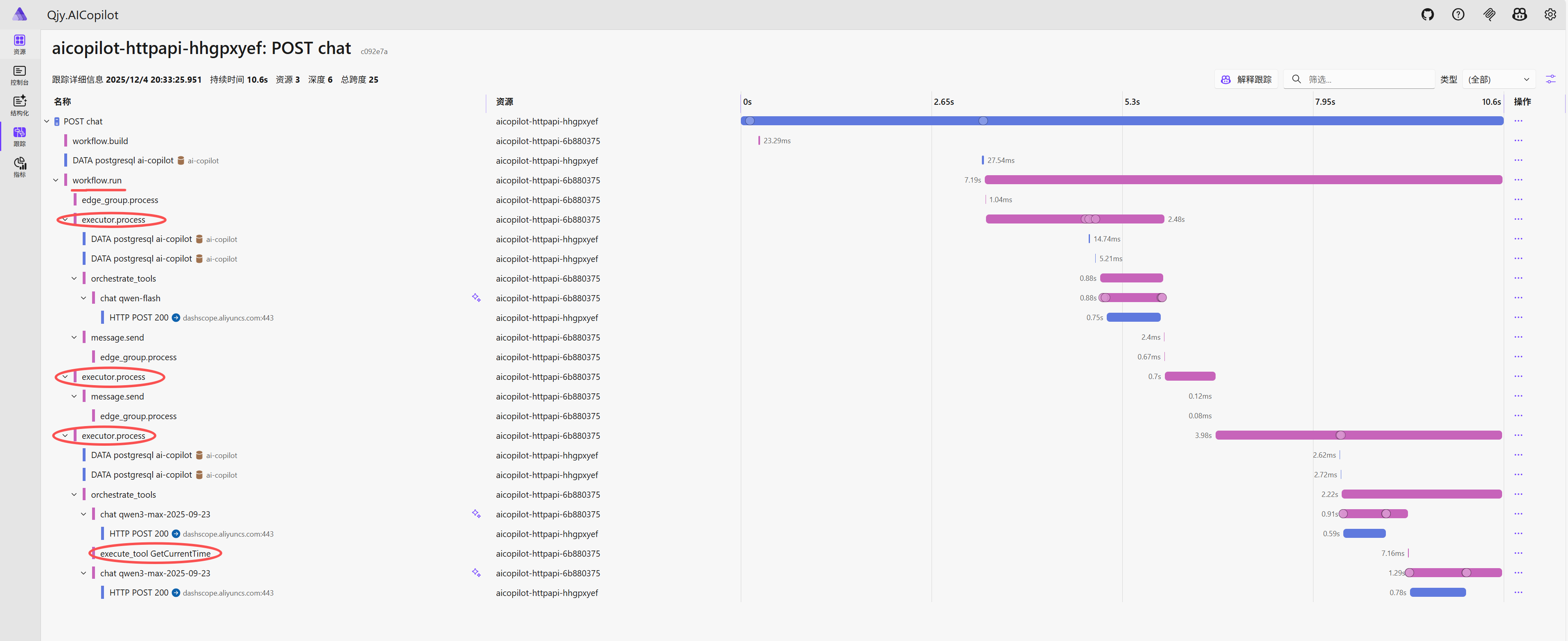 图中我们可以看到 Workflow 的调用,三个执行器,以及时间工具的调用