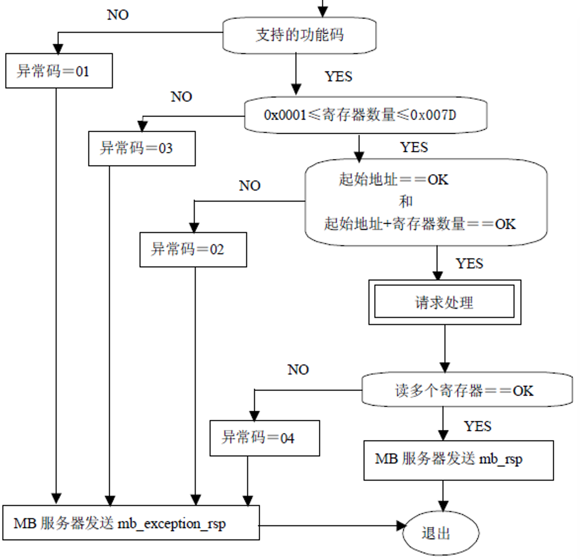 | 07 | 读取异常状态 | 取得8个内部线圈的通断状态,这8个线圈的地址由控制器决定,用户逻辑可以将这些线圈定义,以说明从机状态,短报文适宜于迅速读取状态 |