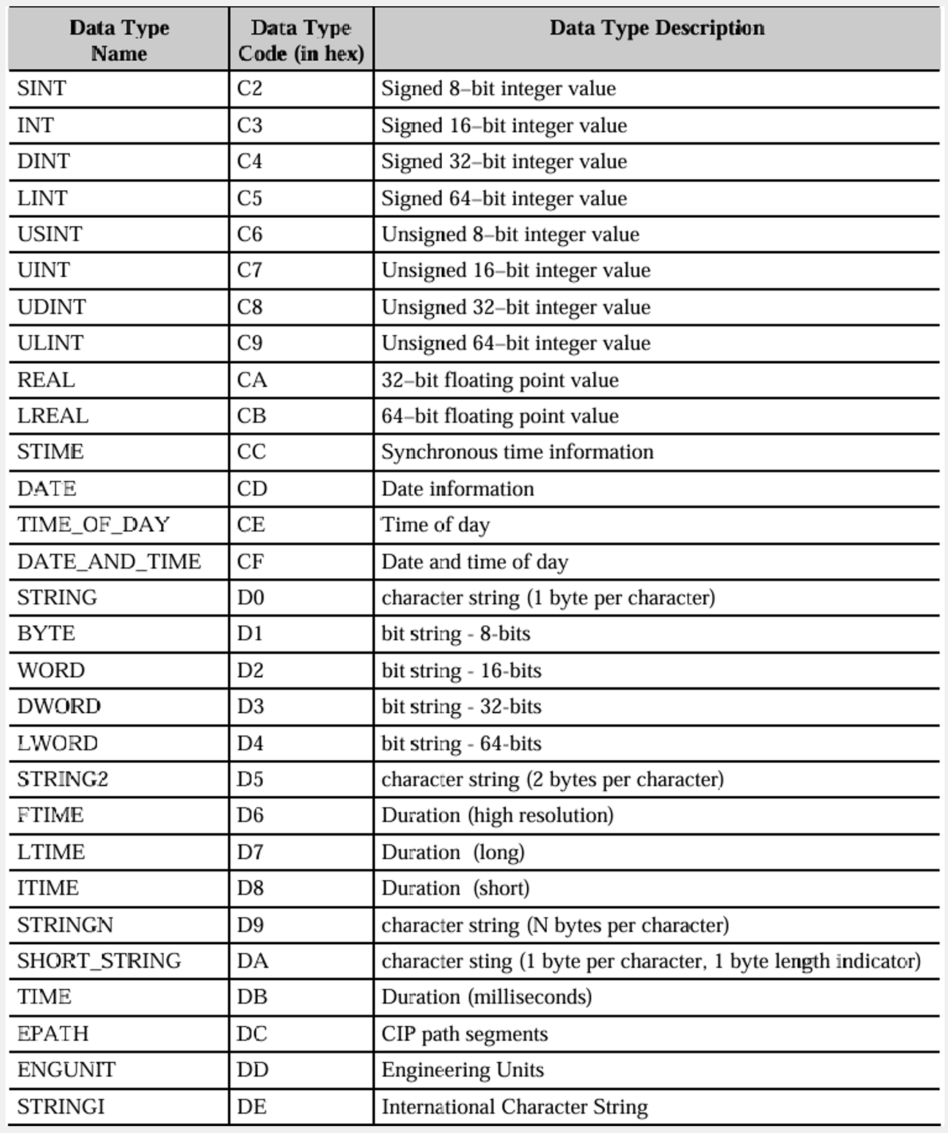 byte_len = CipTypeCodes.TypeLength[type_str];